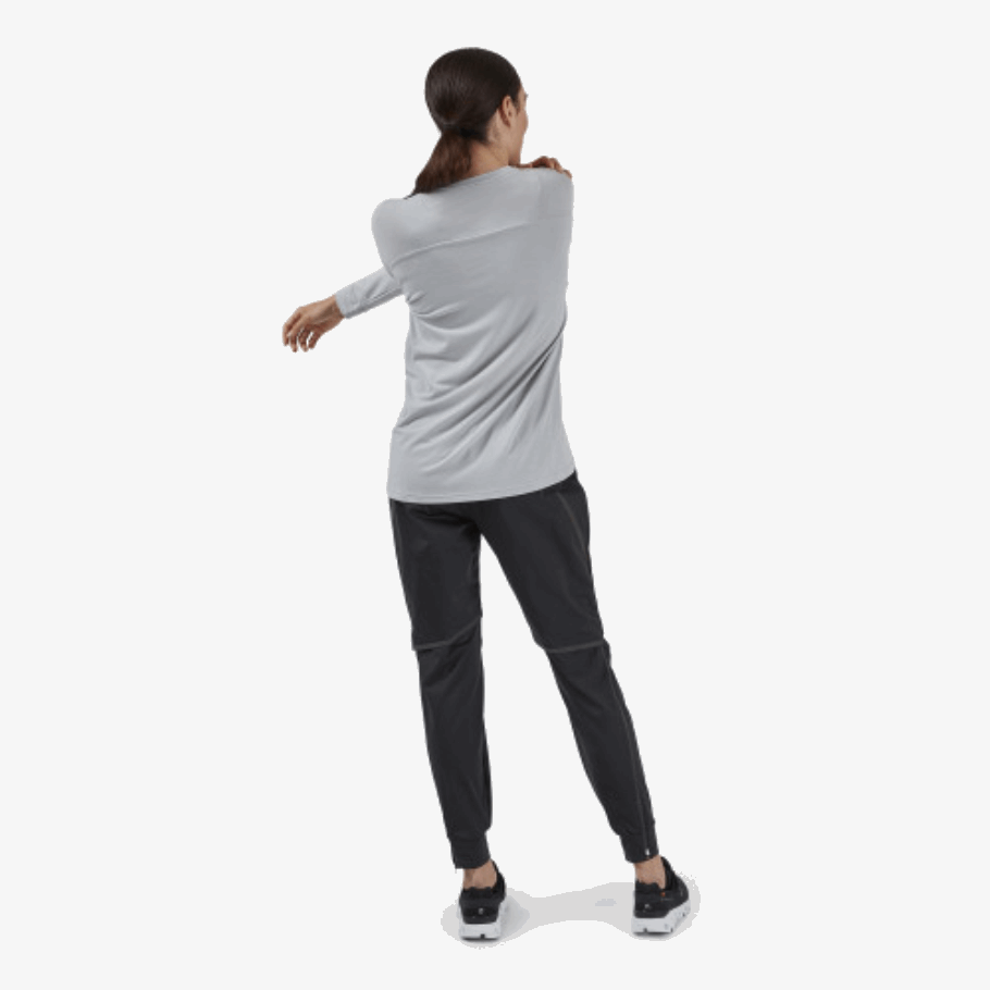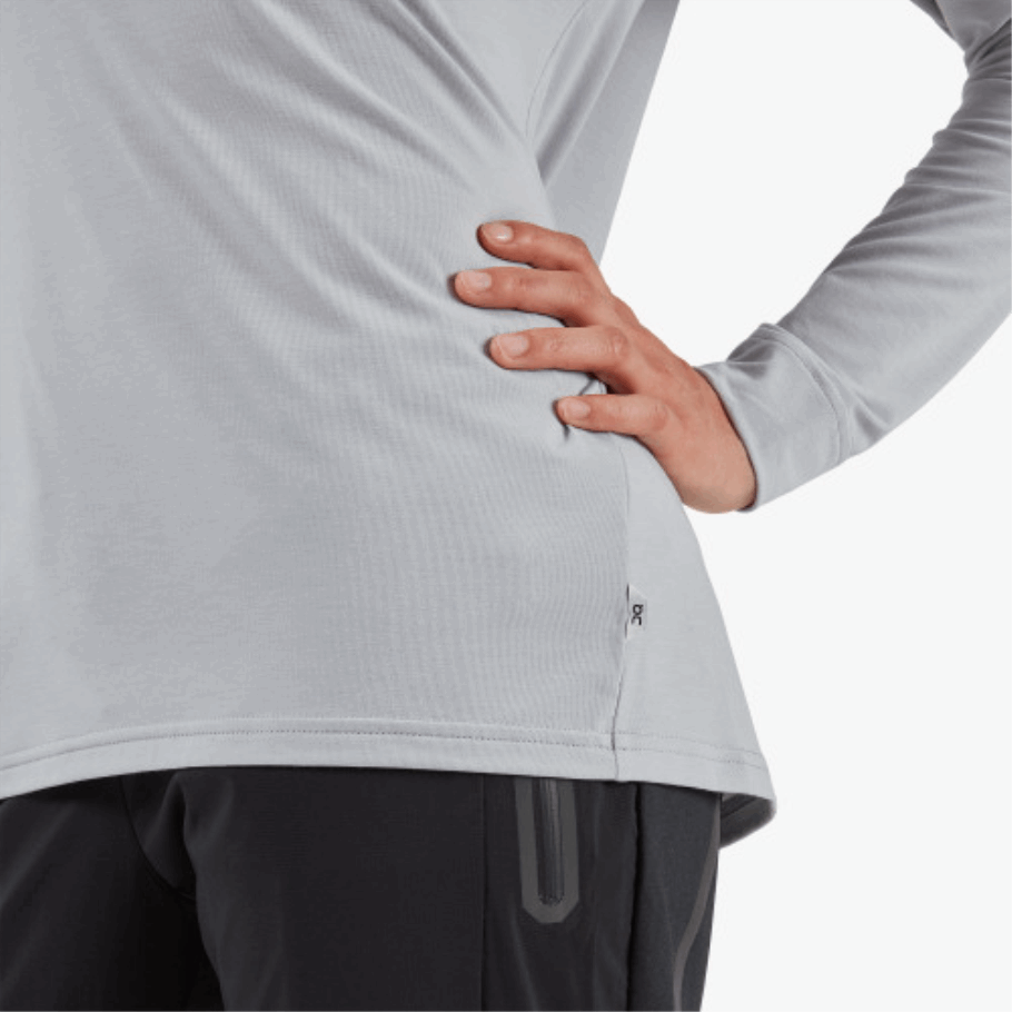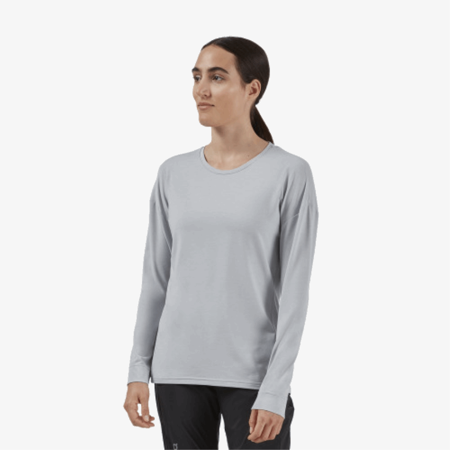 ランニング前、ランニング中、ランニング後に着用できるカジュアルで速乾性のある長袖 T シャツ。スタンドアロンのトップまたはベースレイヤーとして機能します。